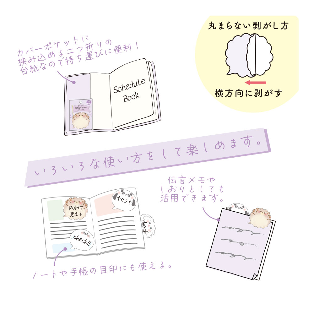 大容量の50枚綴り。 いろいろな使い方をして楽しめます。 手帳等のカバーポケットに挟み込める二つ折りの台紙なので、 持ち運びに便利!伝言メモやしおり、ノートや手帳の目印にも使えます。