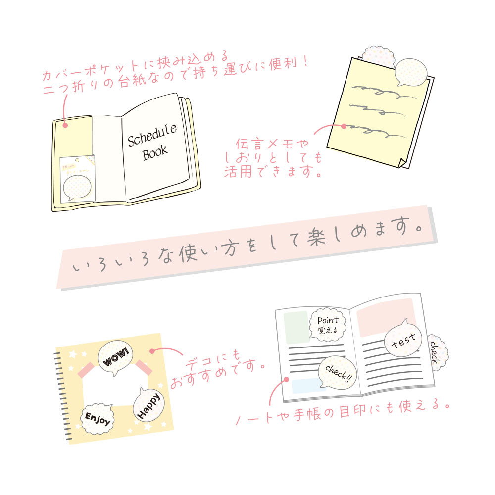 伝言メモやしおり、ノートや手帳の目印にも使えます。