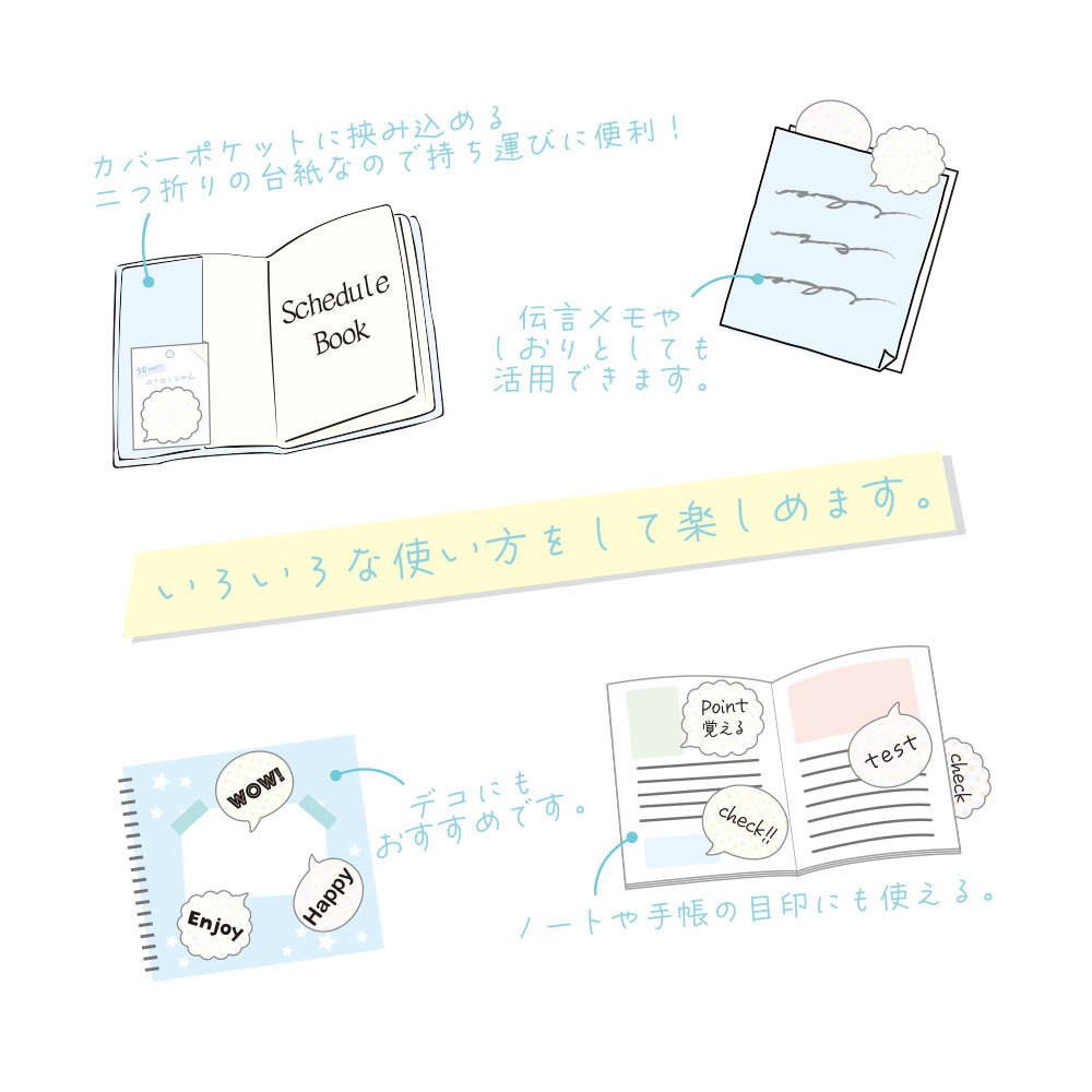 伝言メモやしおり、ノートや手帳の目印にも使えます。