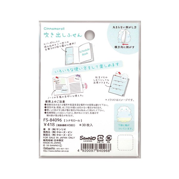 サンリオキャラクターズ×クローズピン吹き出し付箋【海外販売不可商品】