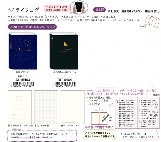 主素材 : カバー:PVC(内ポケット付)・本文:紙・しおりひも1本