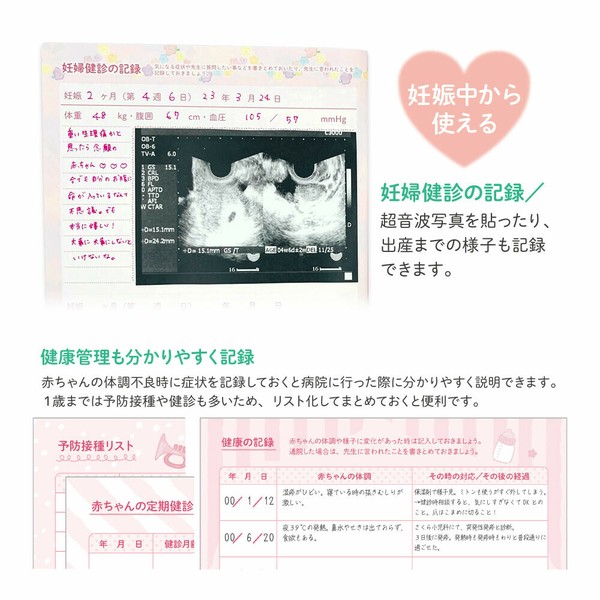 妊婦健診も記録でき、妊娠中からご使用できます。