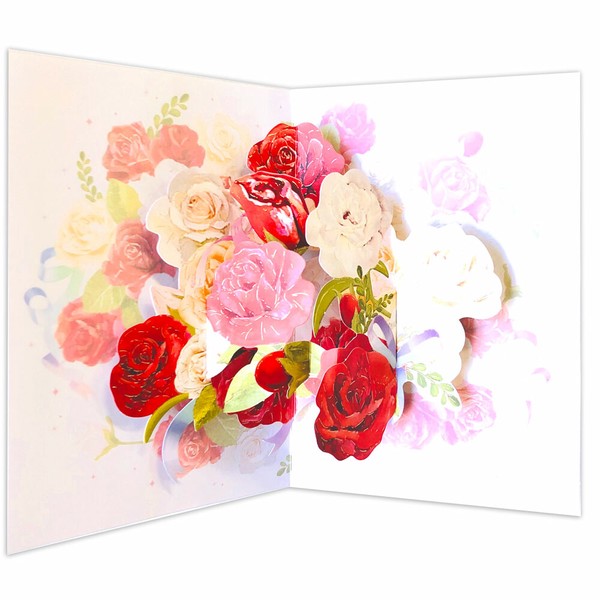 ローズがモチーフの立てて飾れるポップアップバースディーカード。カード開くとモチーフのバラが飛び出してくるゴージャスな誕生日ポップアップグリーティングカードです。